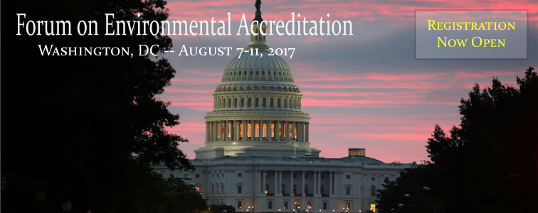 This Forum on Environmental Accreditation brings laboratories, regulatory agencies, data users, sampling firms, and many other organizations to discuss cutting-edge changes in environmental laboratory accreditation and future directions in policy that will have a national impact.