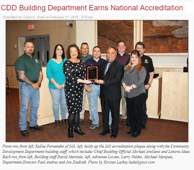 Congratulations Los Alamos County Building Department on achieving IAS Building Department Accreditation. Read the article in the Los Alamos Daily Post, the official newspaper of record in Los Alamos County, New Mexico. https://www.ladailypost.com/…/cdd-building-department-earns…